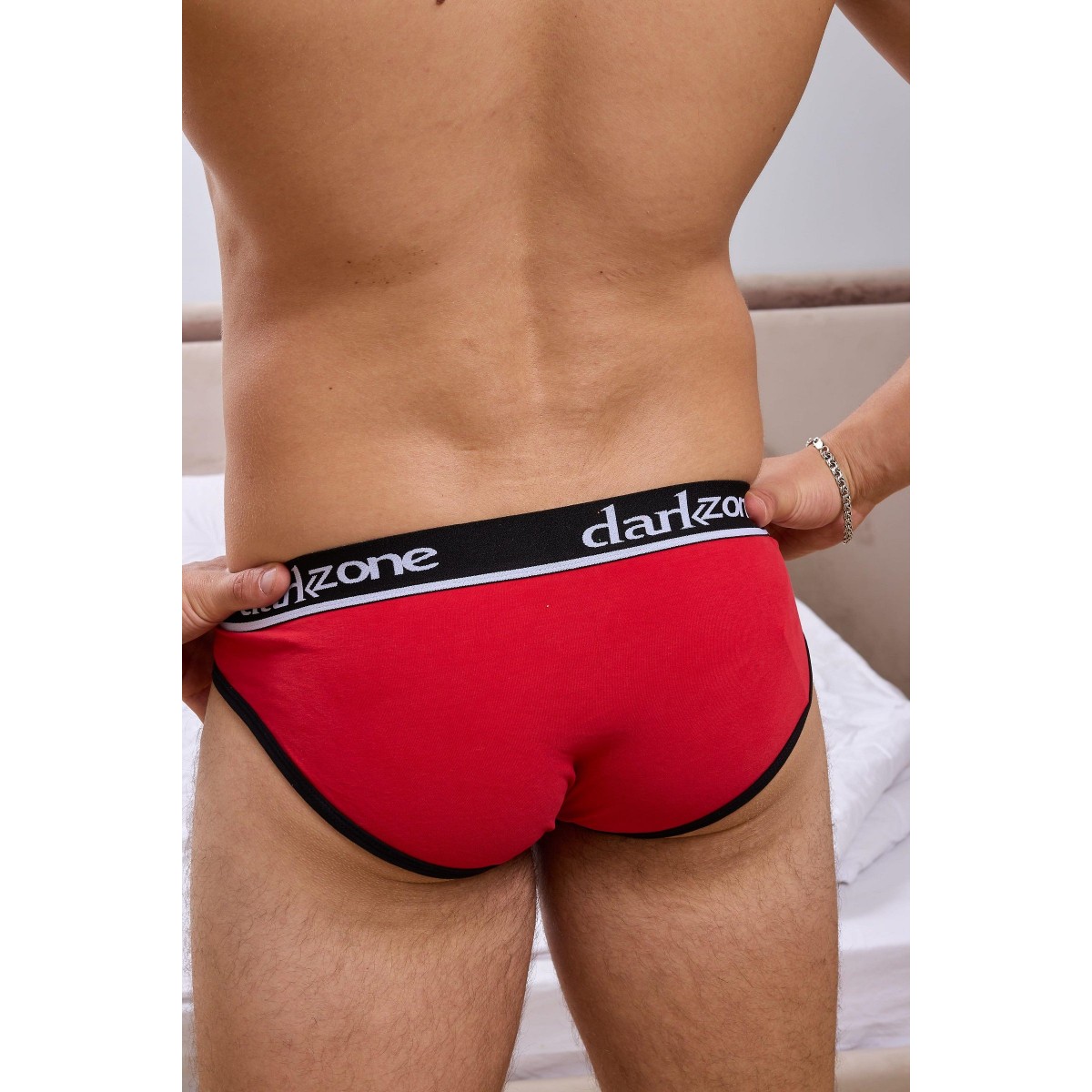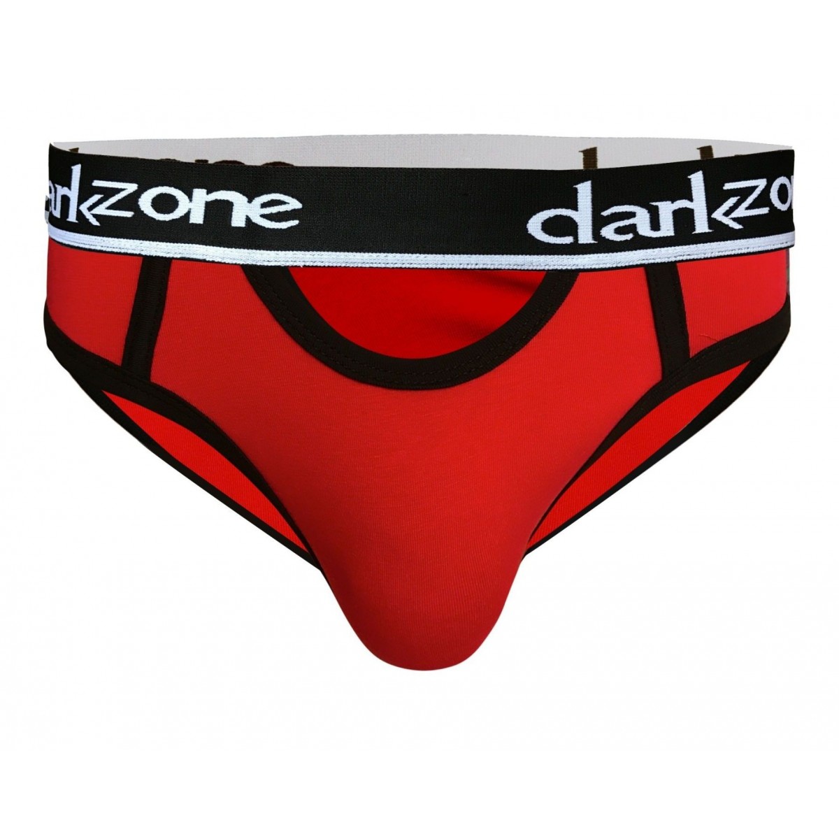 Красные мужские трусы-брифы с вырезом.