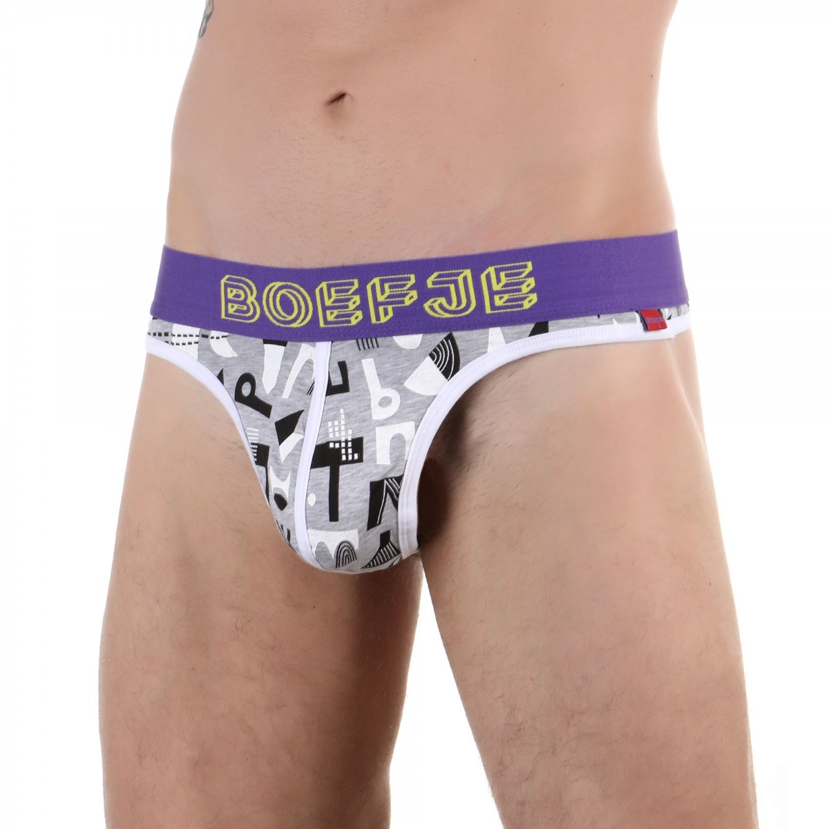 Сексуальные серые трусы-тонги с принтом в виде букв.