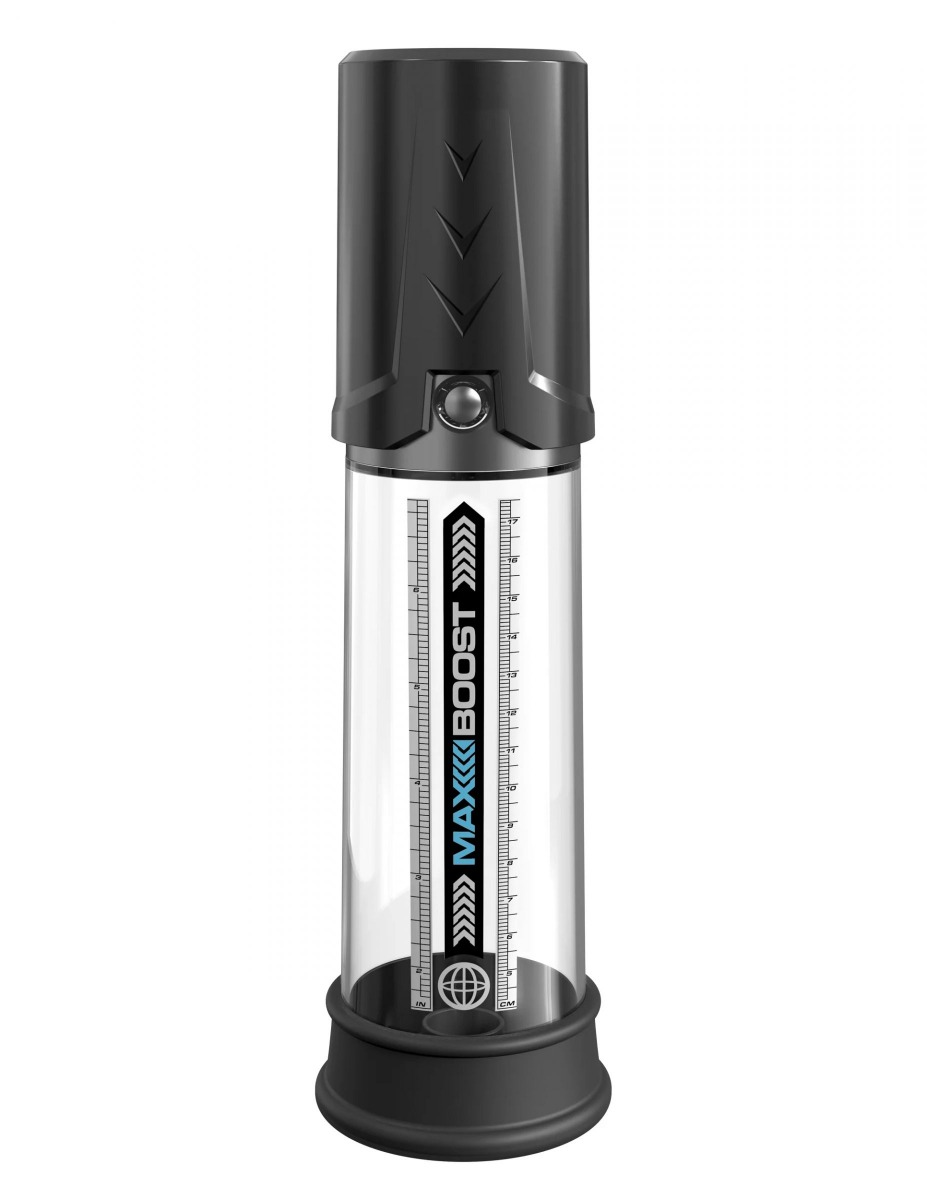 Вакуумная помпа Max Boost. Силиконовая уплотнительная вставка. Прозрачная колба для контроля и наблюдением за результатами. Шкала на колбе для измерения результатов. Создание вакуума происходит путём нажатия на верхний колпачок. Рабочая длина - 19 см.