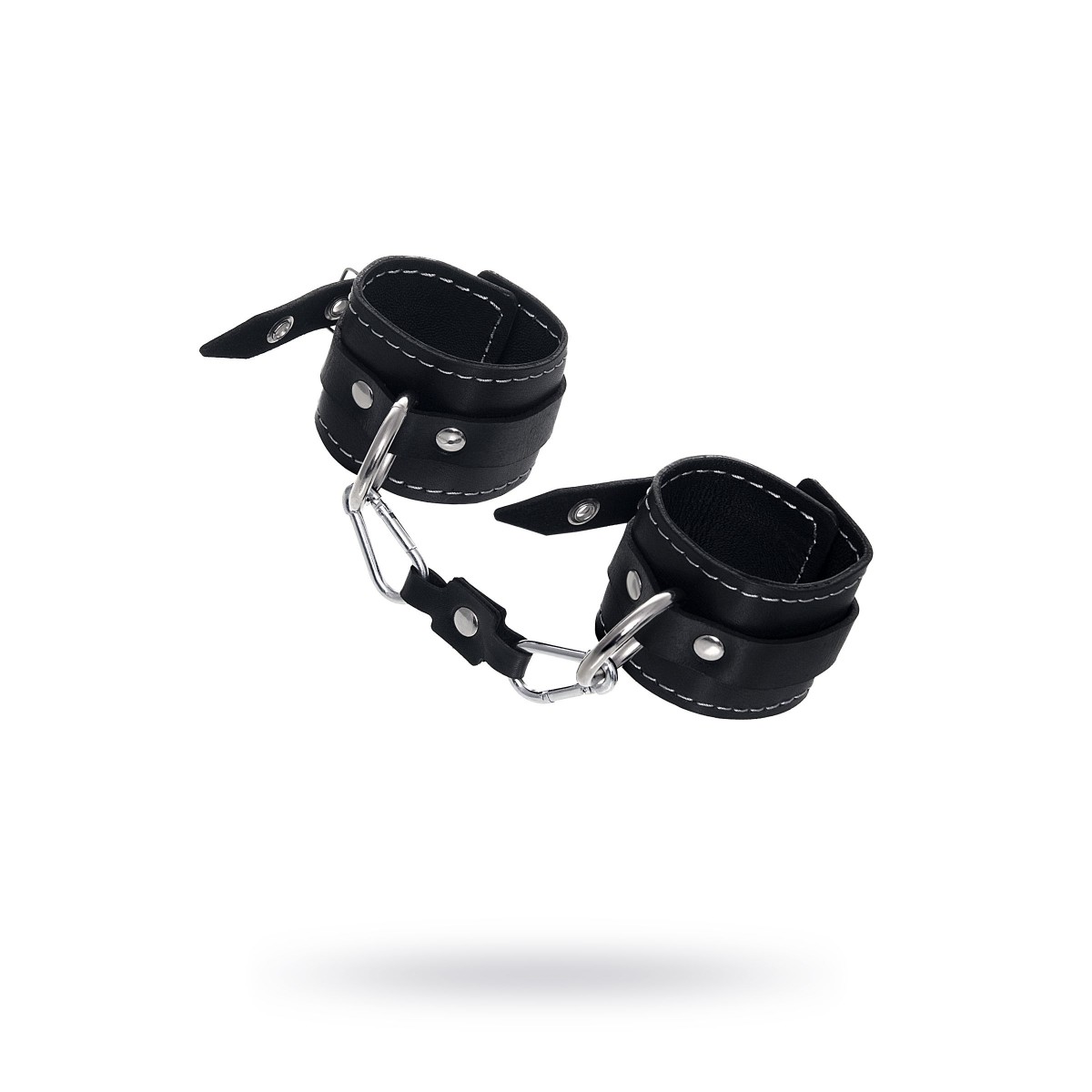 Готовы играть по-взрослому? Не бойтесь своих желаний! Основатели бренда уверены: лучший способ избавиться от искушения - поддаться ему! Добавьте пикантную деталь в ролевую игру и воплотите самую смелую сексуальную фантазию в реальность! Двухслойные кожаные наручники с контрастной строчкой белого цвета могут стать стильным аксессуаром на «свободных» руках, но могут послужить вашим целям и фантазиям по своему прямому назначению. Наличие двух карабинов и колец позволяет использовать изделие как раздельно – аксессуар-манжеты, так и как наручники для фиксации. К широким металлическим кольцам также можно присоединить и другие аксессуары при помощи карабинов. Благодаря универсальному размеру наручники могут использоваться и мужчинами, и женщинами. Размер легко регулируется с помощью металлических пряжек, органично вписывающихся в общий стиль. Ширина манжет 5,5 см, длина манжет 20 см, однако может регулироваться благодаря пряжке. Длина манжет - 20 см, ширина - 5,5 см. Длина сцепки - 10 см.