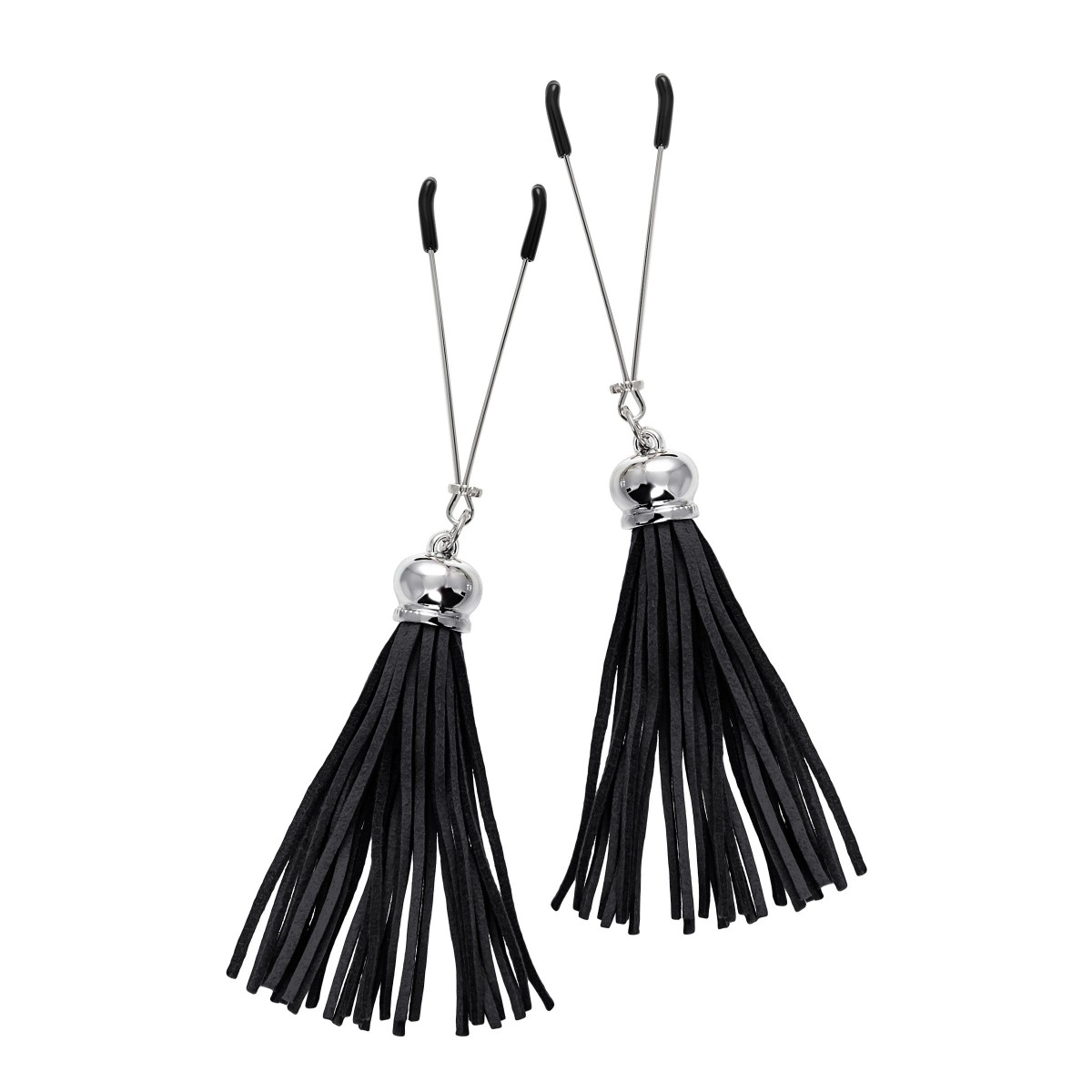 Попробуйте новые, дерзкие ощущения глубокого наслаждения! Зажимы-вилки от Pecado гарантируют смешение ярких чувств от тактильного контакта с нежной кожей сосков. Зажимы выполнены из высококачественных материалов. Металлическая часть компактная, приятная на ощупь. На концах черные резиновые наконечники, для безопасного воздействия на эрогенные зоны. Интенсивность сжатия аксессуара регулируется миниатюрными колечками. В зависимости от личных предпочтений и сценария игры, можно выбрать легкое пощипывание, или сильное сдавливание. Бахрома из натуральной замши, черного цвета, добавляет манящую красоту смелому атрибуту. При каждом соблазнительном покачивании груди, кисточки движутся в пикантном ритме. Также подходит для стимуляции и возбуждении в области половых губ и клитора.
