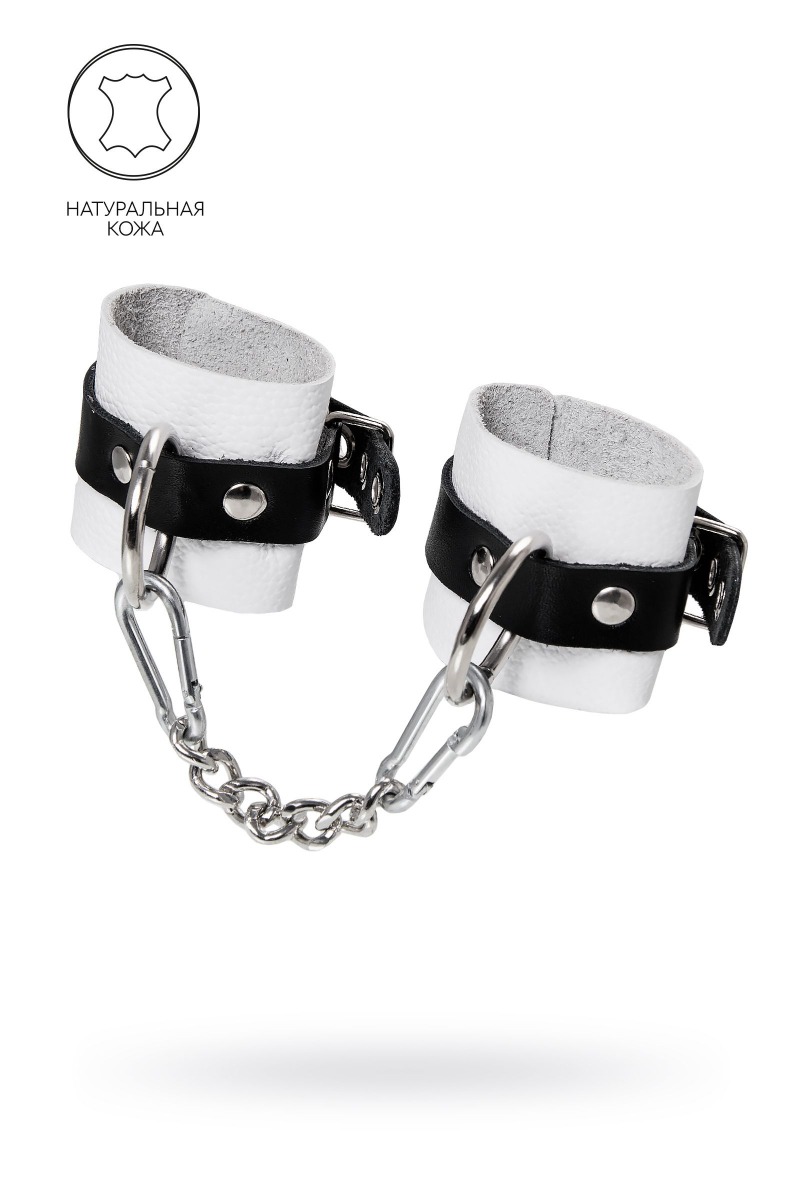 Готовы играть по-взрослому? Не бойтесь своих желаний! Основатели бренда уверены: лучший способ избавиться от искушения - поддаться ему! Добавьте пикантную деталь в ролевую игру и воплотите самую смелую сексуальную фантазию в реальность! Эти мягкие, белые, кожаные наручники с люверсами на жёстких, чёрных ремешках могут стать стильным аксессуаром, а могут послужить вашим целям по своему прямому назначению. Частичное обездвиживание и невозможность двигать руками дают вам полную власть над партнером – взрослые игры для взрослых. Наличие двух колец и карабинов, соединенных между собой металлической цепочкой, позволяет использовать изделие как раздельно – аксессуар-манжеты, так и как наручники для фиксации. К широким металлическим кольцам также можно присоединить и другие аксессуары при помощи карабинов. Благодаря универсальному размеру наручники могут использоваться и мужчинами, и женщинами. Размер легко регулируется с помощью металлических пряжек, органично вписывающихся в общий стиль. Длина манжет - 18 см, ширина - 5,5 см. Длина сцепки - 20 см.