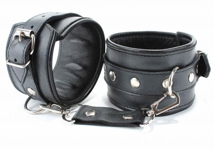 Оживить эротические игры Вам помогут наручники. Этот интимный аксессуар пользуется успехом у мужчин. Выполненные в черном цвете и украшены прочными ремешками. Модный интимный аксессуар не сдавливает и не нарушает кровообращение, так как изготовлен из мягкой кожи. Чтобы любимая никуда не убежала, наручники соединены короткой перемычкой. Длина манжет - 25,5 см., ширина - 5,7 см. Длина перемычки - 6 см.