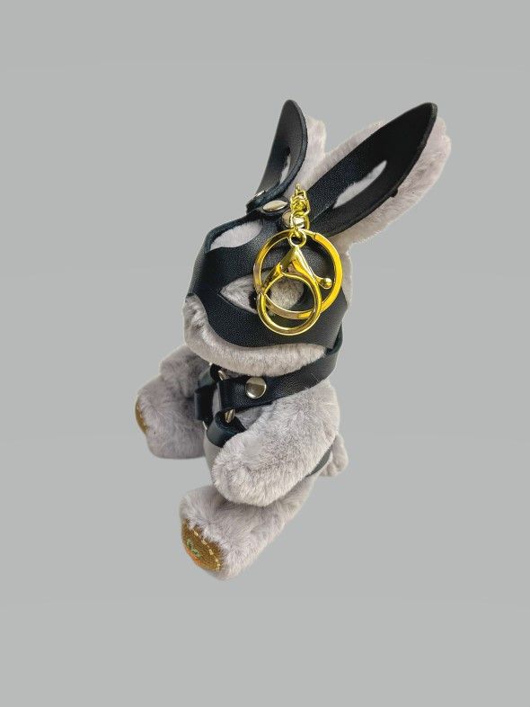 Таинственный зайчик в маске удивит и намекнет на темпераментность дарителя. Снаружи брутальный, а внутри нежный пушистик точно понравится Вашей зайке. Игрушка оснащена карабином и кольцом, её можно носить в качестве брелока на ключах или сумке. Костюмчик выполнен из натуральной кожи.